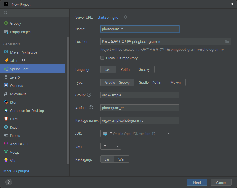 - 강의와 다르게 JDK17 를 설치했고, IntelliJ Ultimate로 진행했다.