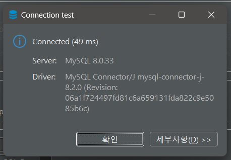 - 왼쪽 아래 `TestConnection` 버튼 클릭함