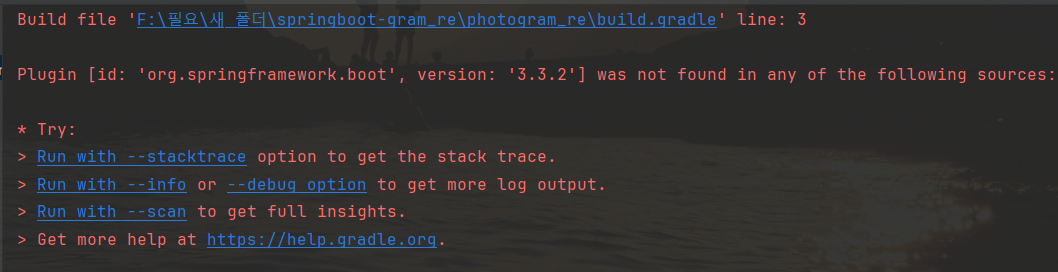 Spring Boot version 문제인 것 같아서, 버전을 바꿨다.