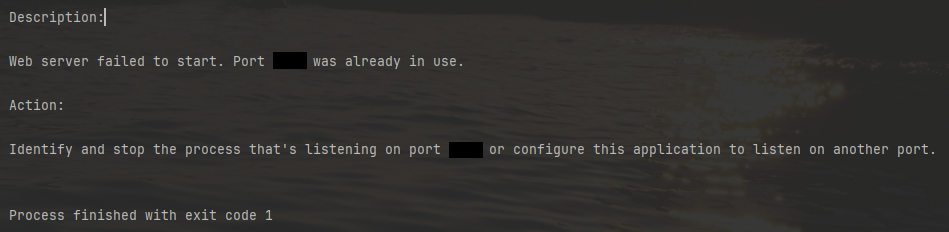- 해당 port를 사용 중인 process를 확인하고 종료하거나, application의 port를 다른 port로 변경하라는 뜻