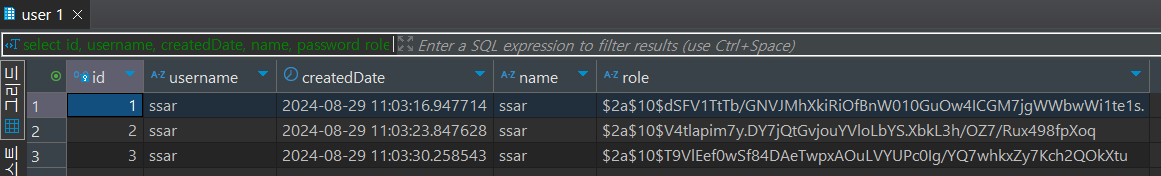 동일 유저 정보를 가입을 했을 때, db에 여러번 쌓이고 있는 것을 확인할 수 있다.