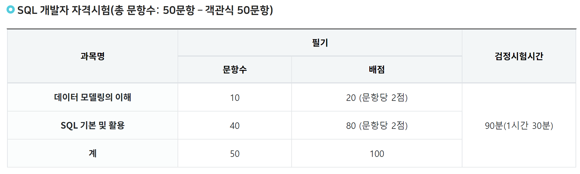 `데이터 모델링의 이해`는 이론 위주이고, `SQL 기본 및 활용`은 쿼리가 많이 나온다.
