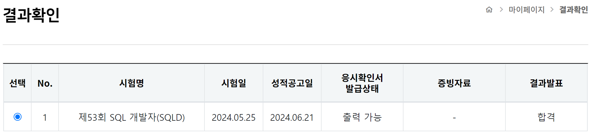 올해 5월에 SQLD 자격증 시험을 봤다.