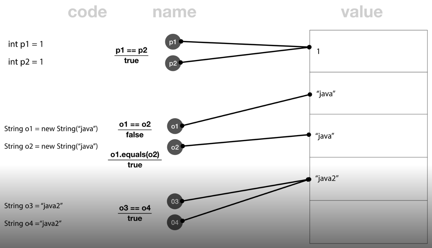 == 동등 비교연산자는 값이 같은 곳에 위치하고 있는지를 따짐