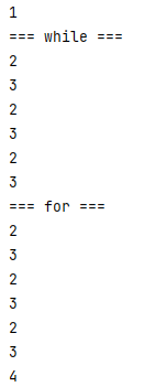 System.out.println("=== while ===");