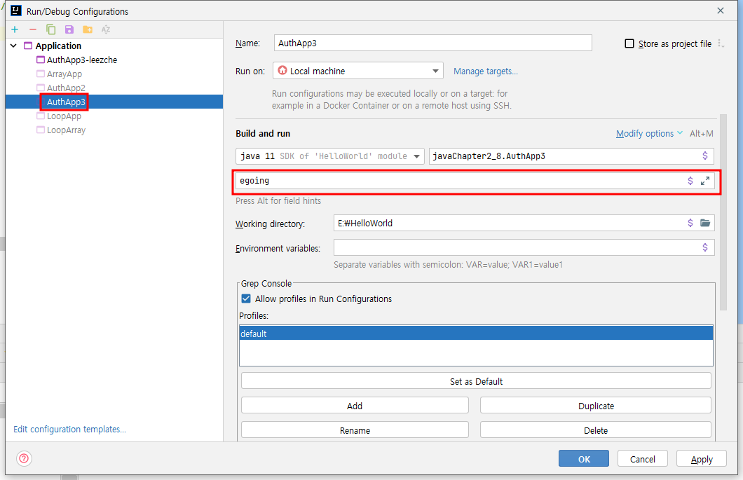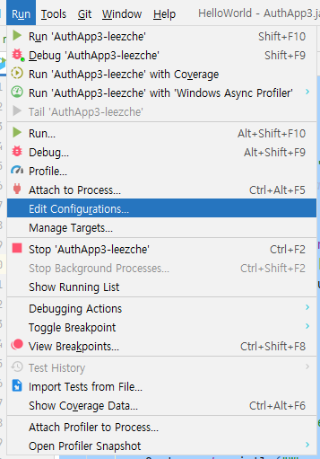 인텔리제이에서는 run-Edit Configurations에서 하면 된다.