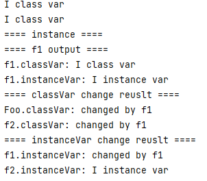 System.out.println("f1.classVar: "+f1.classVar); // I class var