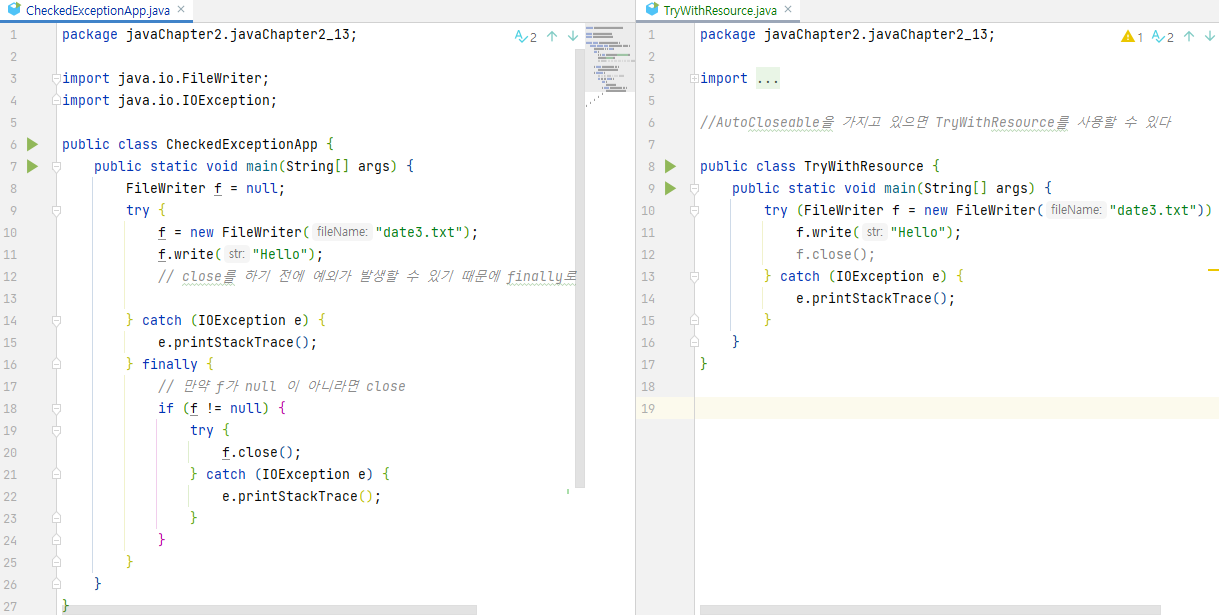 //AutoCloseable을 가지고 있으면 TryWithResource를 사용할 수 있다