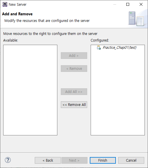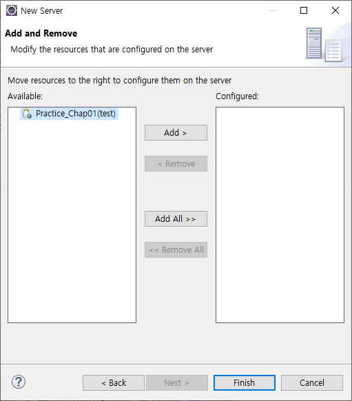 Available에 있는 project를 add 눌러서 Configured로 옮긴다.