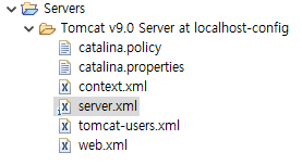 Servers -> Tomcat v9.0 Server at localhost-config -> server.xml