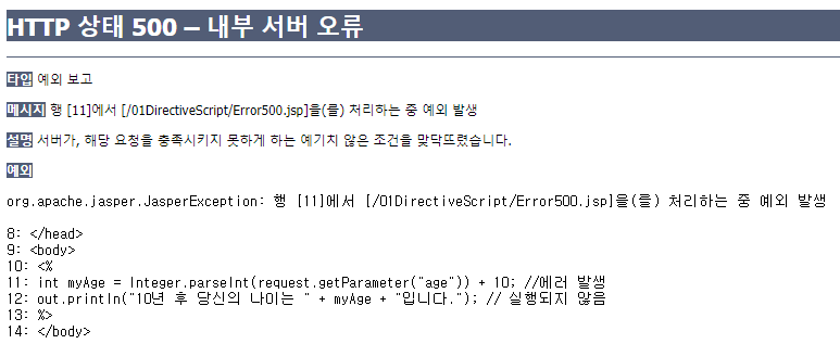 int myAge = Integer.parseInt(request.getParameter("age")) + 10; //에러 발생