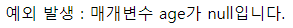 out.println("예외 발생 : 매개변수 age가 null입니다.");
