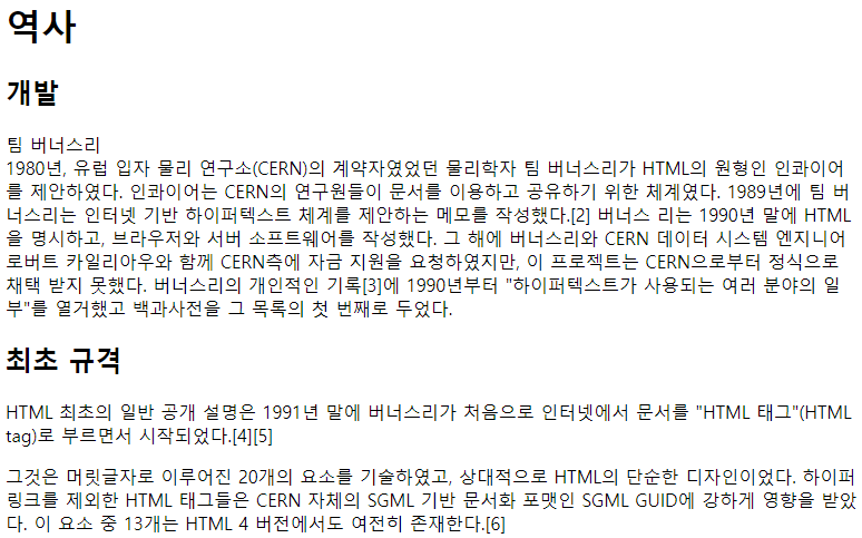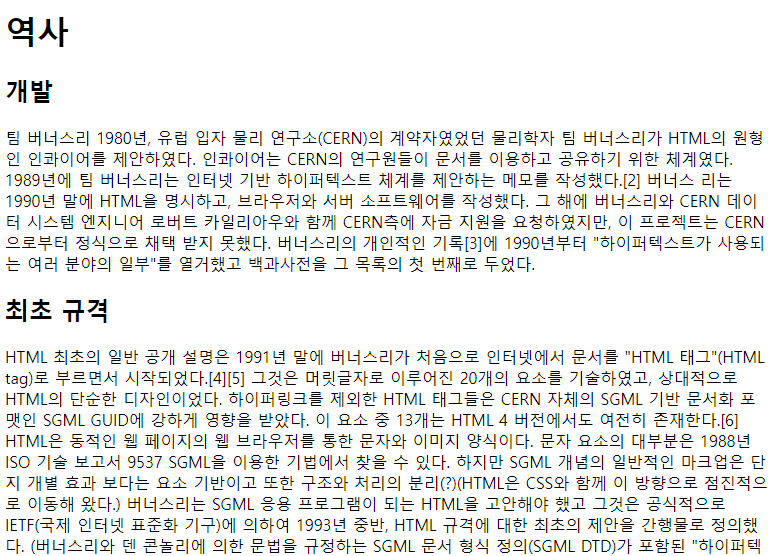 단순한 디자인이었다. 하이퍼링크를 제외한 HTML 태그들은 CERN 자체의 SGML