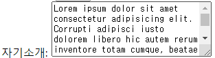 자기소개: <textarea cols="30" rows="5" >Lorem ipsum dolor sit amet consectetur