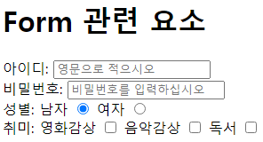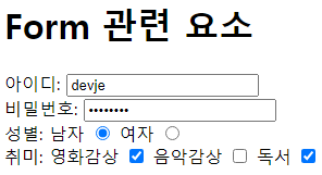 취미: 영화감상 <input type="checkbox" name="hobby" /> 음악감상