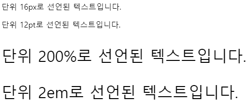 <p class="px">단위 16px로 선언된 텍스트입니다.</p>