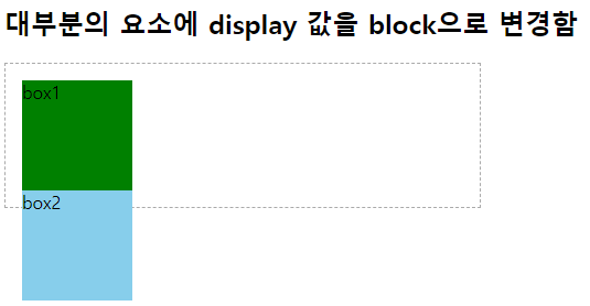 <h2>대부분의 요소에 display 값을 block으로 변경함</h2>