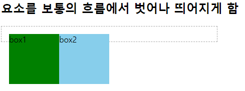 <h2>요소를 보통의 흐름에서 벗어나 띄어지게 함</h2>