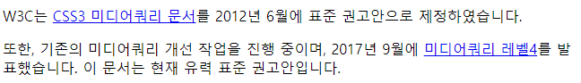 <a href="https://www.w3.org/TR/css3-mediaqueirs/">CSS3 미디어쿼리 문서</a