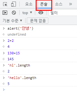 - 문자열 뒤에 .length 입력하면 문자 길이를 알 수 있음