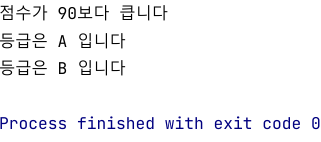 System.out.println("점수가 90보다 큽니다");