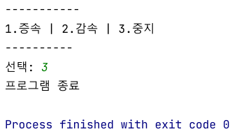 System.out.println("1.증속 | 2.감속 | 3.중지");