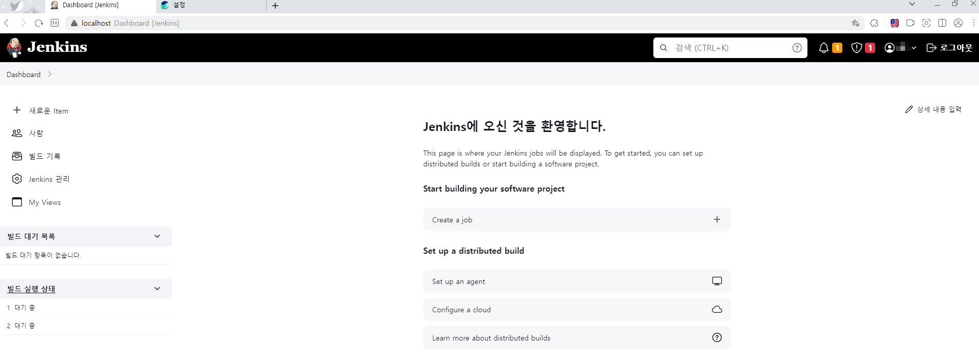 설치가 완료되었으면, 이제 젠킨스를 사용해 봐야지.