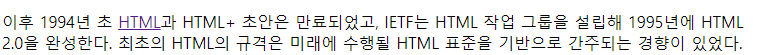 최초의 HTML의 규격은 미래에 수행될 HTML 표준을 기반으로 간주되는 경향이